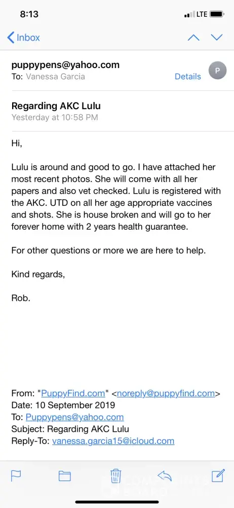 Puppyfind removes customer complaints about the breeder at the breeders request. Therefore, it might look like a breeder has a 5 star rating, but in reality they could have many negative complaints against them. Puppyfind.com should allow customers to post (and keep posted!) ratings and comments about their experiences with a breeder. Removing comments is not ethical of Puppyfind because you really don't know who you are dealing with or how many people that have scammed in the past.
