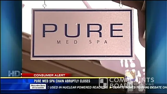 Hi, I am having similar problems. I have given this people about $5000, and I am not half way through treatment yet. I have called all of the Pure Med Spa locations in Northern CA and finally one answered (all the others are closing down). The one that I was able to go through had a nice manager, and considering that these people seem to be going out of business, it was amazing that she was trying to help me. I guess she knew that I realized that this wasn't her fault and she helped me out. She told me that their store will probably be closing in 4 weeks, and that will be the end of the Northern CA stores. I would suggest that you contact some consumerwatch in your area. Here is a link: http://cbs5.com/consumer/Contact.ConsumerWatch.2.564110.html There is an 800 number that you can call and volunteers that know about these cases will give you advice. They work M-F from 11am to 1pm. I think that if enough of us complain, they (the CBS5 t.v.) will go after them and expose them on television. Not good rep, but we gotta do what we gotta do to get our money back. Here is my email if I may help you in some other way: bacp00@hotmail.com