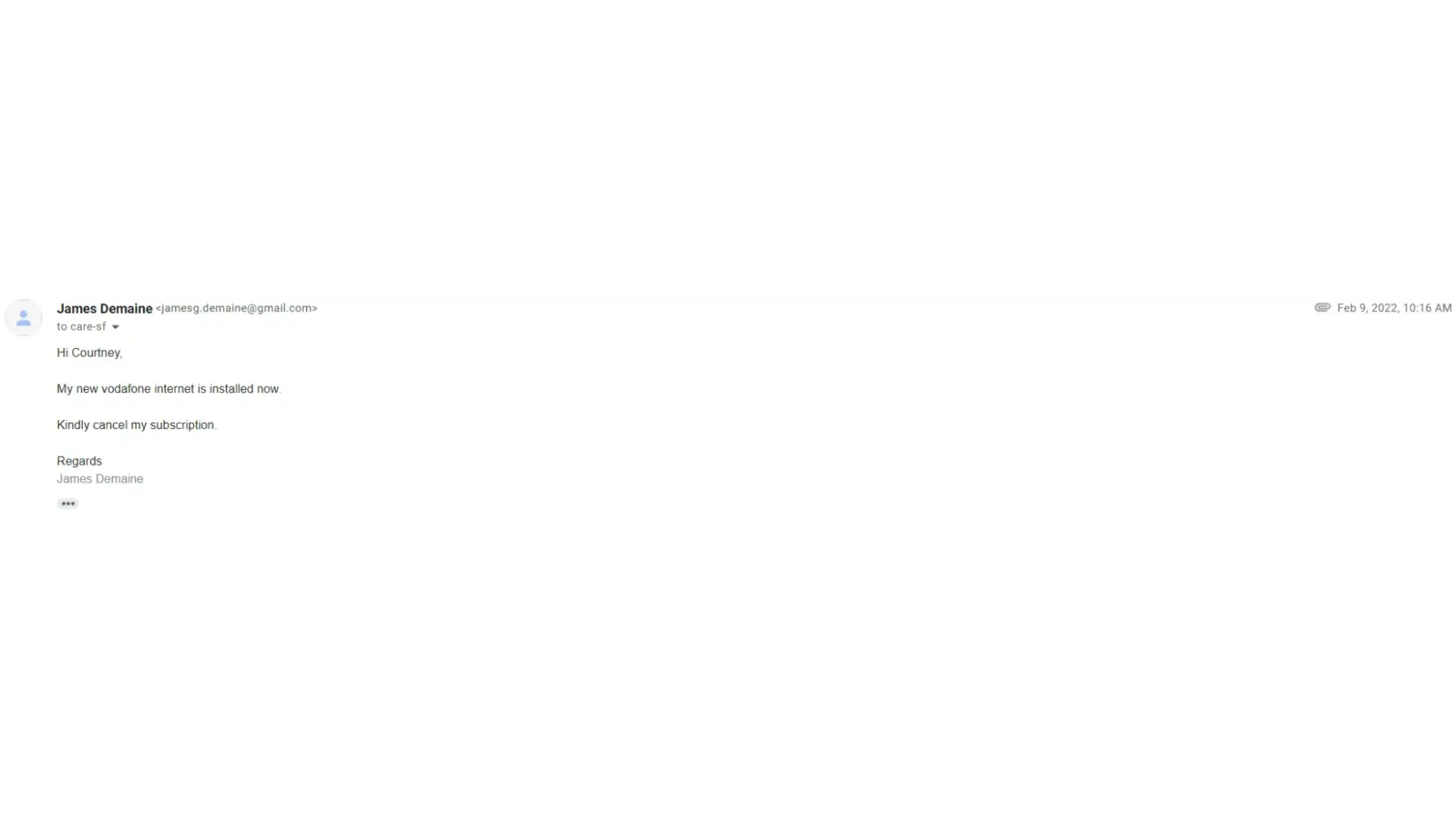 I requested a cancellation (not a move) of my service on 9th February 2022.