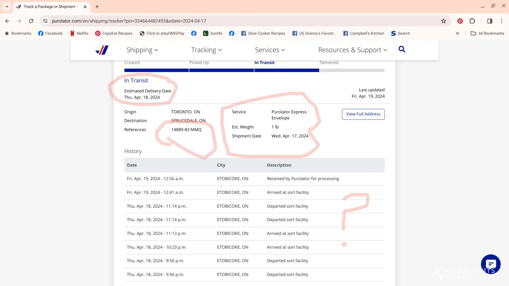 ordered a phone case from Samsung, and the delivery was handled by Purolator. A red notice appeared on the tracking page, and when I contacted customer service, I was told that they had lost the address. I asked where I could pick it up, and the representative gave me the location. Thinking I could check it again on the website later, I didn’t write it...