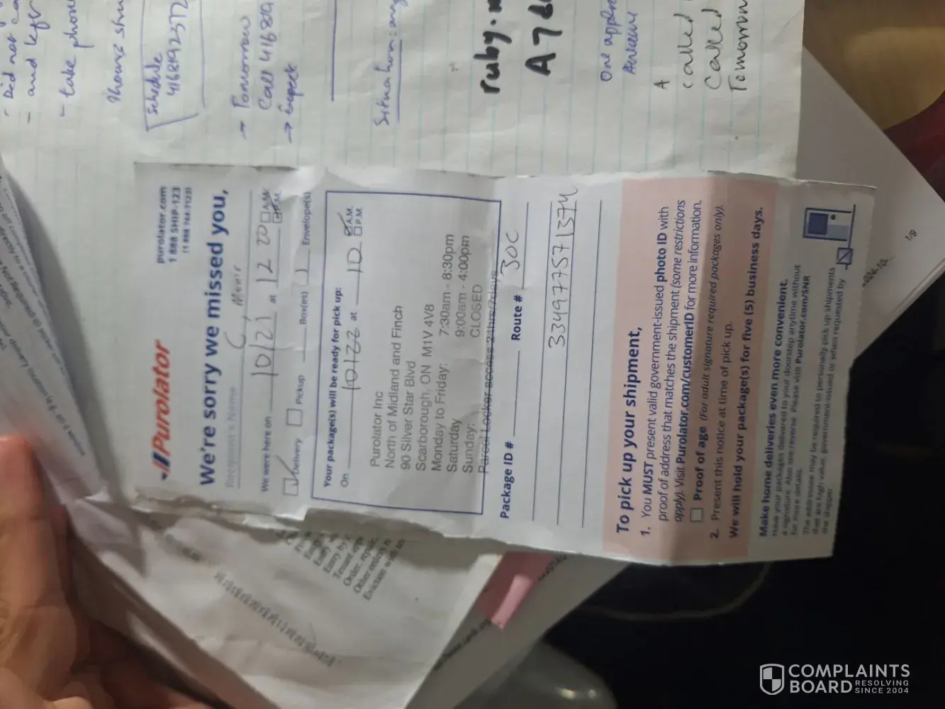 I would like to put a complaint in, I ordered a package back in January, 2024 and was told it would take about 2 - 3 weeks, on March 4 I began to inquiry about my item with the company, they indicated to me that they received notice from Purolator that the package was attempted delivery on February 8th, 2024.