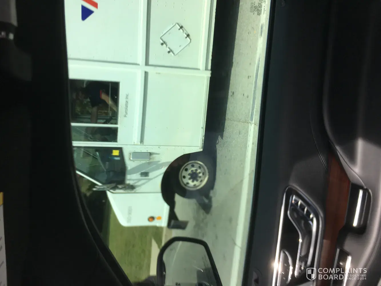 obviously the truck was a Purolator truck and trailer. I didn't get the plate # sadly. But Purolator, teach your drivers to check their [censored]ing mirrors!