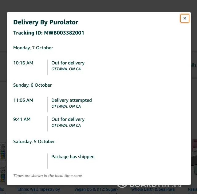 purolator delivery - tracking id mwg001122505