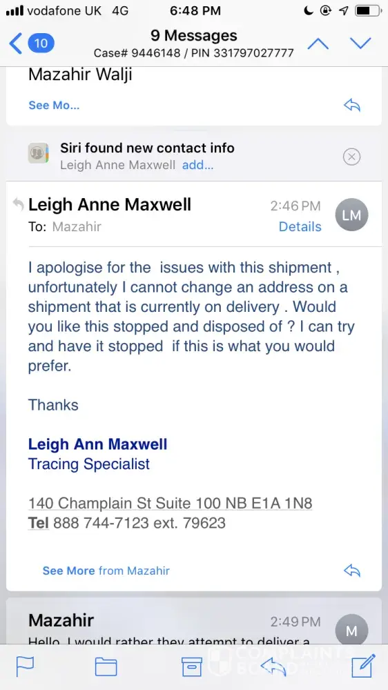 nah if Purolator can't sort this out from this level I will seek to speak to a higher rank in the company. If I have to call the CEO of the company I will
