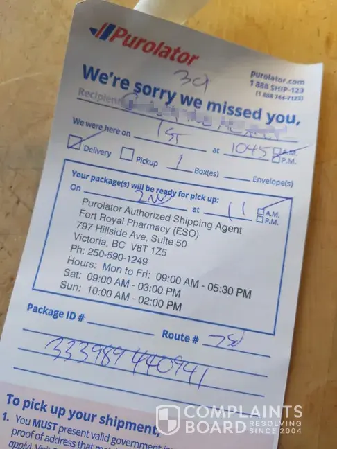 Desired outcome: For Purolator to deliver packages. It's a package delivery company, not a bloody mailbox.