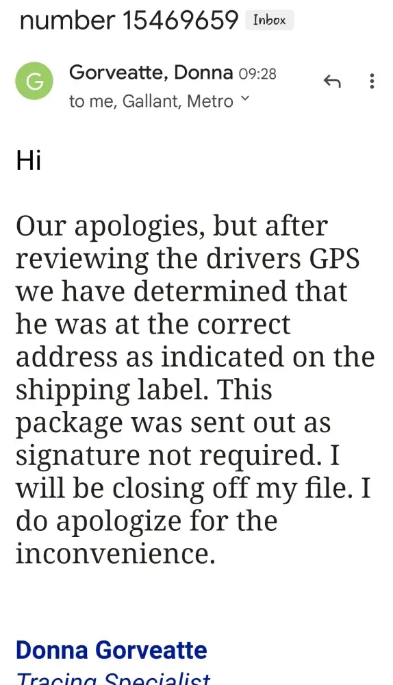 Then he insisted that is must have been delivered to a different purolator, other than the one on the bill. I asked if he would check with them, he said, that is not my job., you will have to find out for yourself.
