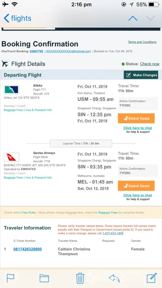 Its became a nightmare, its to complicated for me deal with qantas, its too stressful.