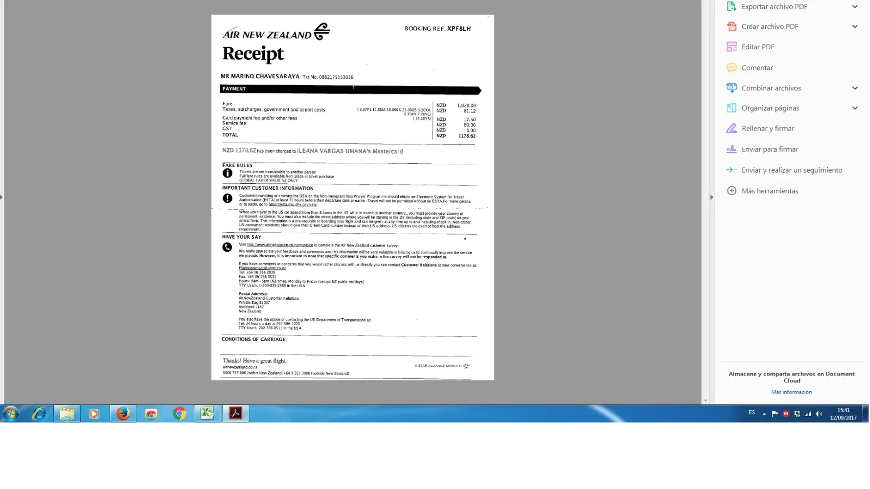 On August 28, 2017 I arrive to the Aukland airport in New Zealand aroumd 8:00PM with the book Reference M77SMB, last name: ARAYA.