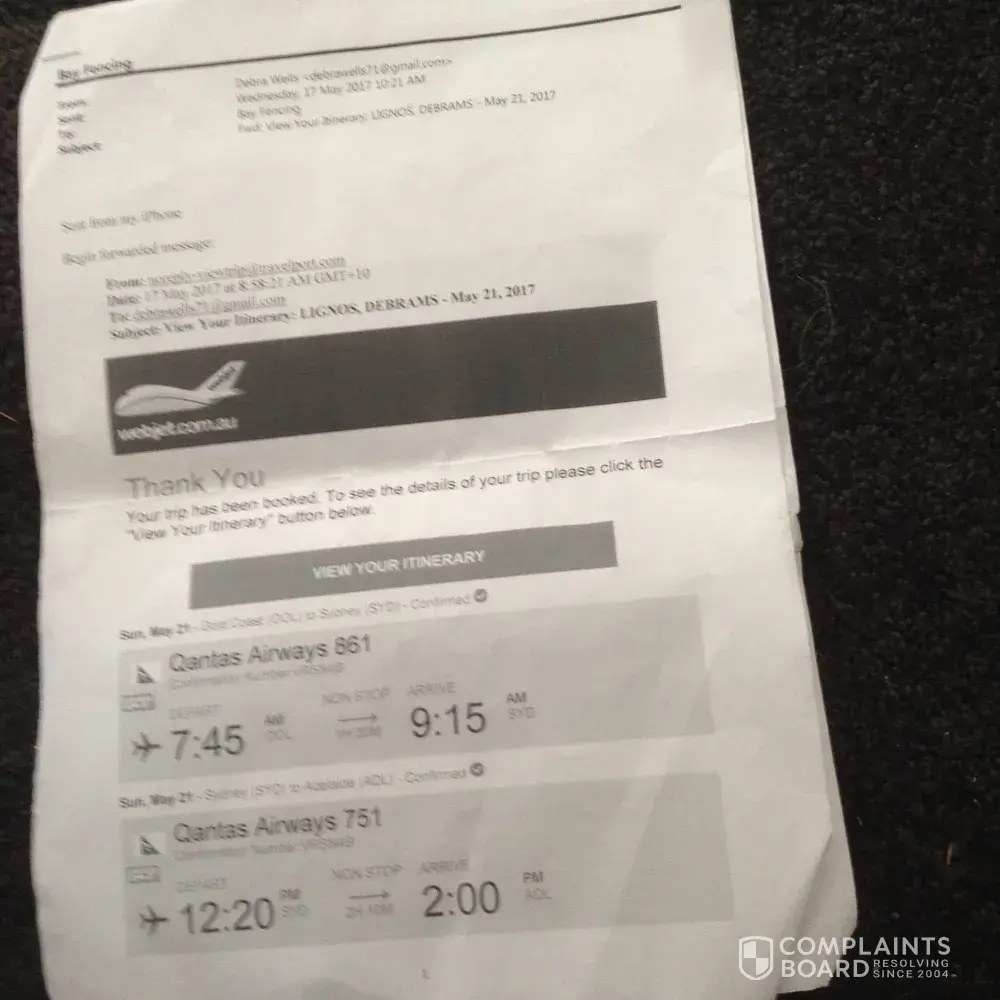 I complained in person at Sydney airport and was told to lodge a complaint online which I did immediately upon our return. Qantas were very slow to respond and some alleged replies I never received. The "customer care representative" we finally dealt with was named "Kylie" and she was very short and dismissive in her replies and ultimately unhelpful. Qantas claimed they conducted an investigation but they never contacted me for further information and they never supplied me with the steps of their investigation. They claimed we were "no shows" but we did show up, albeit late, but because of the negligence of Qantas USA. They claim that we would have had to show our itinerary when we checked in at SFO but we did not and were not asked for it anyway. They don’t seem to know how the process works in the US. The first and only itinerary we received was at BNE airport so we never saw their terms and conditions either. In addition to lengthy email correspondence I also phoned several times and sent a long letter to Qantas Mascot, to which I never received a reply. I also complained to the Airline Consumer Advocate and their advice was that I contact the Qld. Department of Fair Trading.