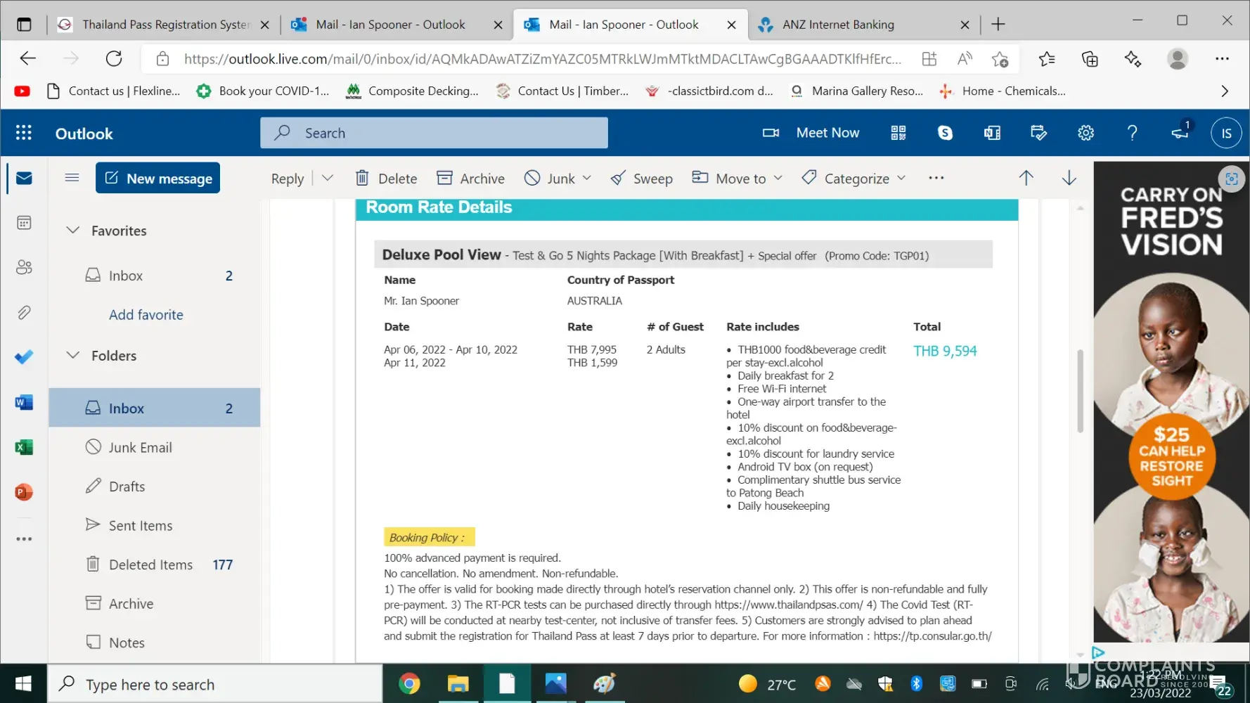 Flight Booked 21st Feb 2022 Paid in full $402.88