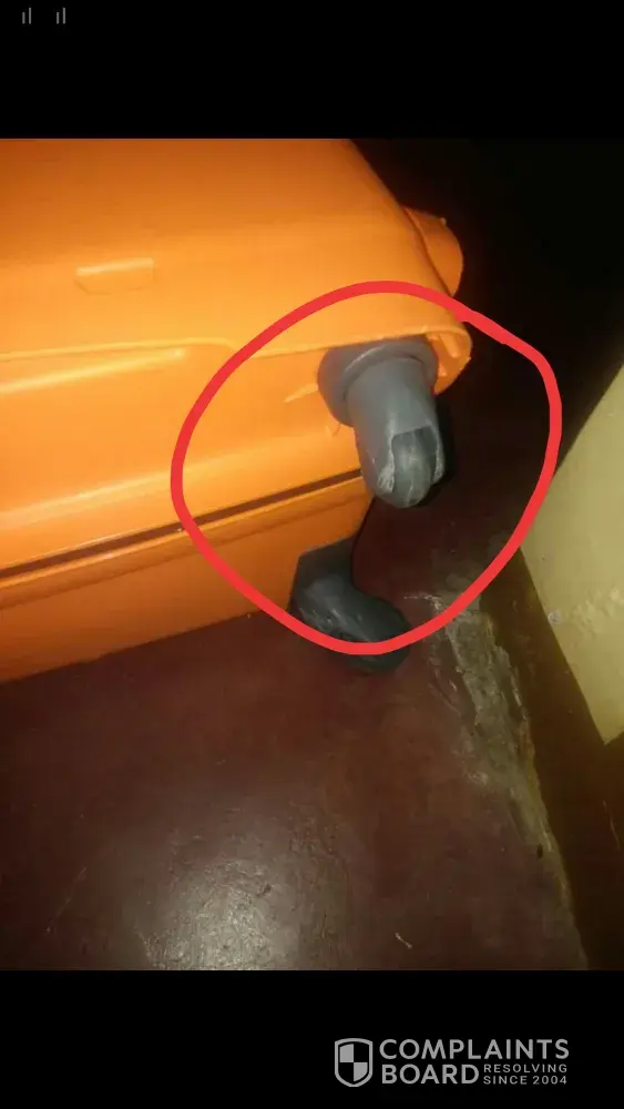 I took a flight last august 3 from barcelona to doha to philippines with my luggage Working properly now when i reached philippine airport and took my luggage it was hard to push and having a hard time pushing it. Then the next day when i check it one of the front wheel is busted. For sure it was thrown hard and fell to the floor hard. I provided some photos of my luggage you will see that the wheel that i encircle is deep not like the other one. I hope you check this because my luggage is not a cheap one that gets broken easily and thats a hard earned money so i hope i can hear something from you soon... Thanks in advance