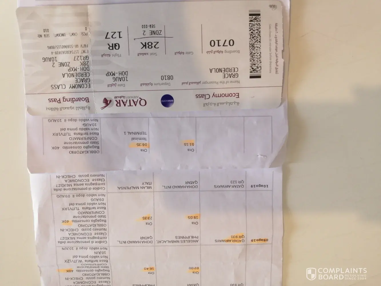 I am Villamor Villarta Cerdeñola which supposed to go back to Italy last July 18 from Mabalacat clark airport but I was denied to board the plane, reason was, i have an expired permit of stay.I presented additional documents to prove that i must be allowed go fly that day but the supervisor that day said they received an email directly from the italian immigration that i cannot enter italy with expired permit of stay (which i believe not true). I was then advice to give all the additional documents because that time the counter is closed, and iwas told to wait for an advice from the italian immigration. I was not informed nor received any call. After 3 days I went back to qatar office at clark and they said i will better apply for re-entry visa which i didn't do because the italian embassy advise me not to, i refuse for a rebook, so i bought ticket from another airlines and was able to enter italy without encountering any problem. With my experience with Qatar, i dont know if i will still choose or ask my friends to try qatar. My family is a afrequent flyer of Qatar, in the name of my wife # [protected]. Please help me and refund the money lost caused by this unfortunate experienced, i was allowed by italian immigragration to enter italy using another airline but not with Qatar as alleged by your supervisor in the ground on july 18, 2019. Thank you and hope for your action.