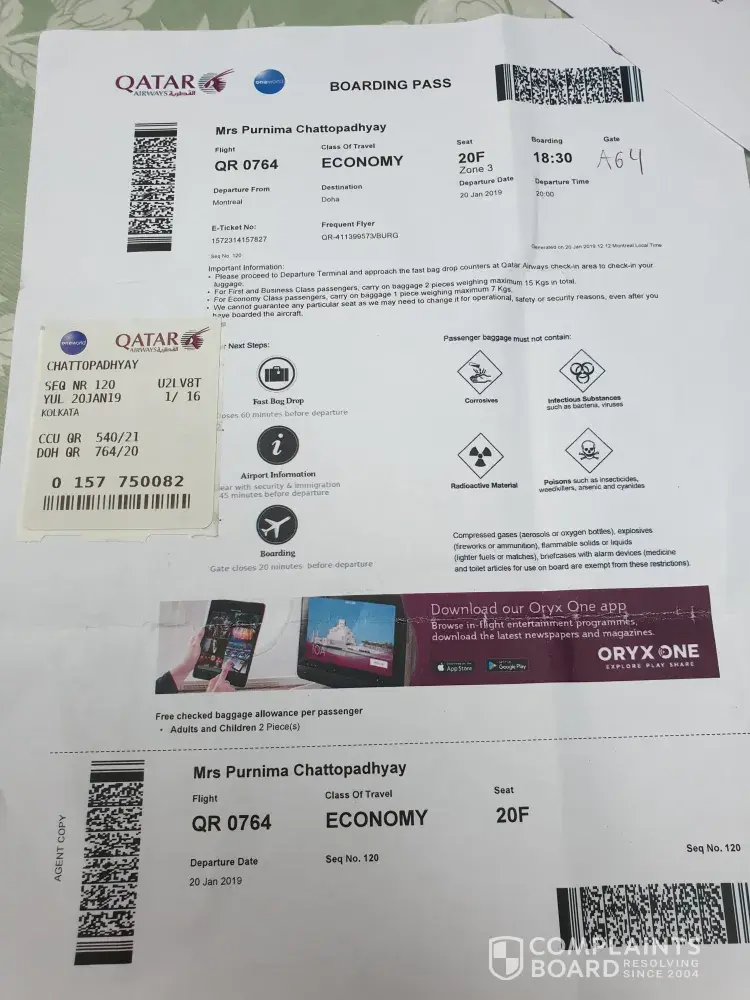Attached herewith picture of my boarding pass denied from Qatar and boarding pass able to travel from Thai Airways.