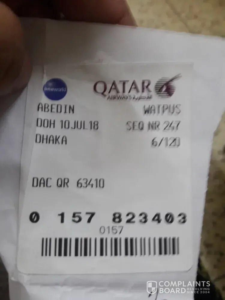 With regret this is to inform you that my family(wife, son-adult & daughter-infant) traveled from Doha to Dhaka through Qatar Airways flight number: QR634 on dated the 10th July 8:55am but one hand bag tag number: [protected] has not yet received. So my son Syed Raihanul Abedin already has reported for the missing property at your Qatar Airways, Shahjalal International Airport Office with the file reference: DACQR21454/10JUL18/1328GMT but as of now no whereabouts.