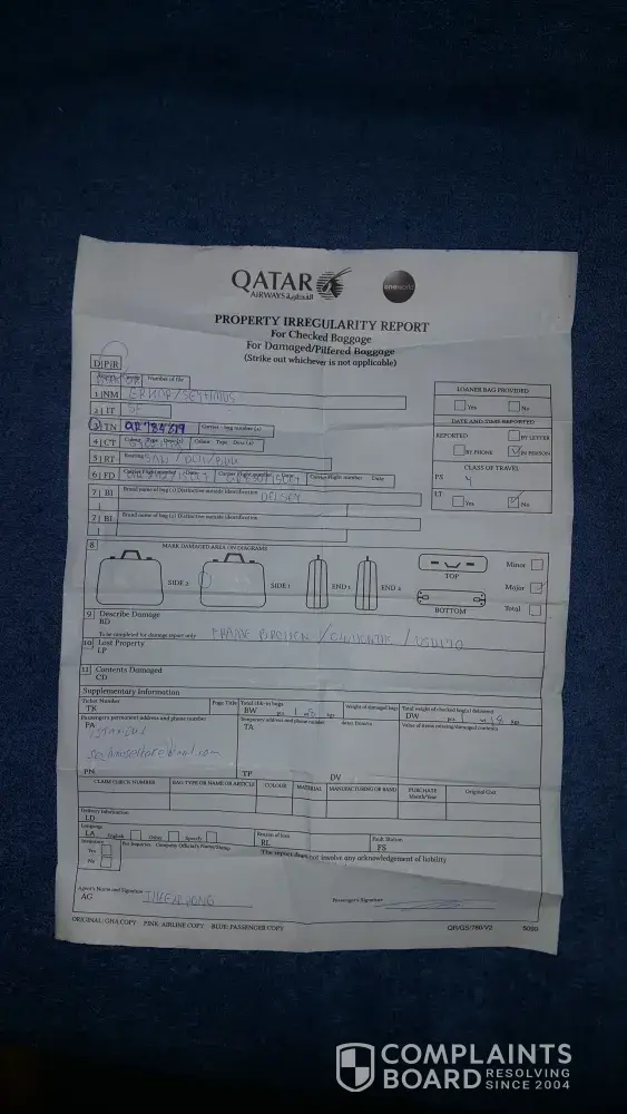 to my suitcase? Did that team? Forward the pictures to you or anybody else? They bend a frame of a Samsonite suitcase with 3 locks and because they dropped my luggage they did not mention it but because one of the locks was damaged because they mishandled my luggage, but now that we use the word lock? You assume we traveled with a lock that did not work?, We stared of traveling with 3 suitcases with perfectly working locks, ended up with one totally useless unless, we wrap it on a airports so that the one half of the suitcase don't open up, and not even claiming for wrapping the suitcase every time we board, You expect me to accept one man's decision who was not even interested to help us on a Sunday who was irritated when we woke him up at his desk without any supervisor, who made me filled in forms for 2 hours after a 38 hours flight receiving 3 suitcases not one of them overweight! and a third one dropped, Now it is my problem because the airline dropped one and washed their hands and blame me for their neglect taking care of passengers suitcases? Trusting that Qatar airlines will take responsibility for the people they employ to take care of luggage who fly with them? You tell me why I have to accept such neglect? I suggest with your reply you include a cc email address to your superior so that I can take this further and bring this case to higher authority, so that they can see with how much disrespect you treat the airlines you are working for and the passengers who fly with Qatar, refusing to take responsibility for their mistake!