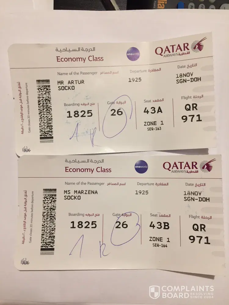 On 18th of November 2017 togheter with my wife we had a flight from Ho Chi Minh city (SGN) to Warsaw (WAW) via connecting airport Hamad International (DoH) - flight number QR 971.