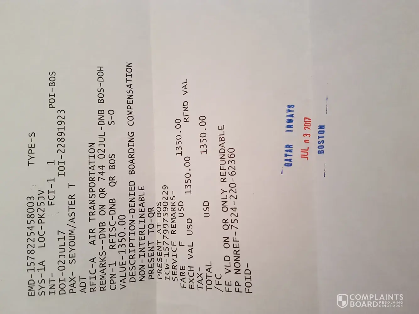 My flight reservation on July 2nd 2017 from Boston to Addis Ababa via Doha was overbooked and I was denied boarding, I was told that I'll be compensated for $1350 USD which will be wired to my account or mailed to my address in Boston it has been 22 days I haven't received the check nor deposit in my account