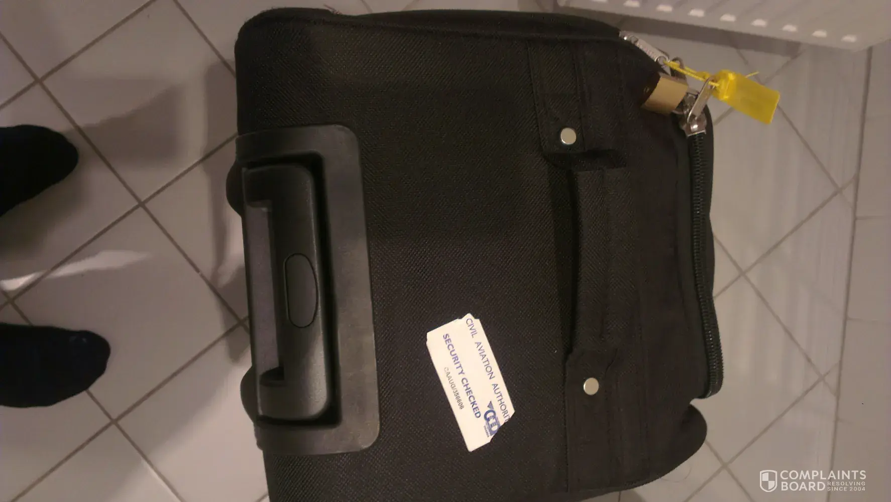 "Upon investigation, we were advised by our courier company, the bag was plastic wrapped and a small part was opened to allow handles to be pulled up. Furthermore, there were no signs that bag has been tampered.
