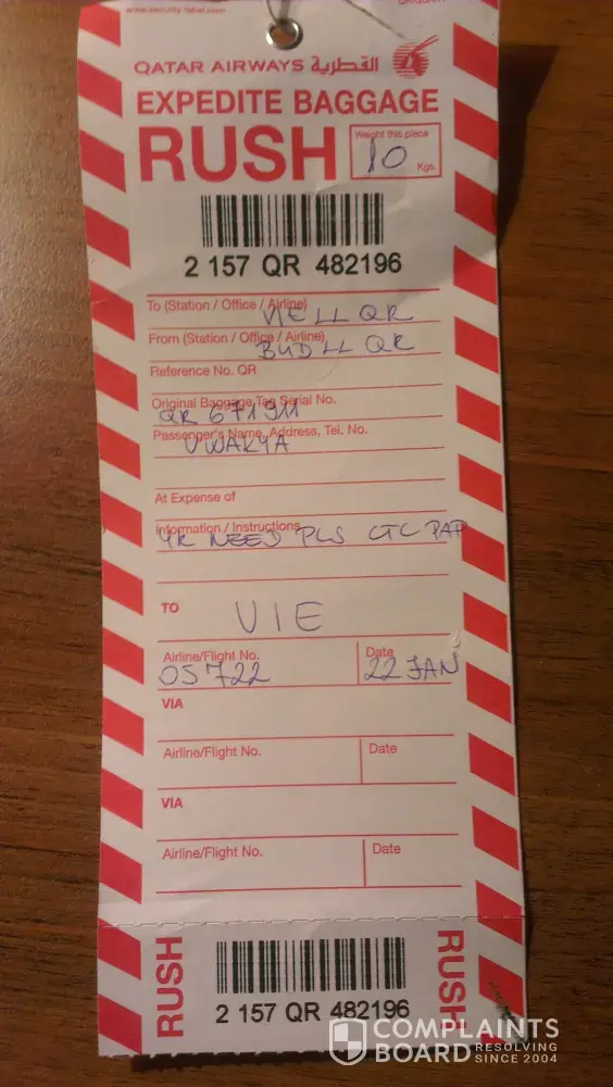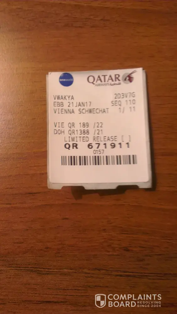 I paid a ticket for a flight Entebbe – Doha – Vienna (Airline reference: 2D3V7G, Electronic ticket number: [protected]) as you can see from the pictures attached, to attend a medical seminar on "bone and joint surgery" in Salzburg. The flight delayed for 2hours in Entebbe on the 21/01/2017, which lead me to the consequence of missing the corresponding flight to Vienne. Another flight was rearrange for me to reach Vienna via Budapest with assurance that I will find my luggage in Vienna. Surprisingly I reach Vienna late than expected by the original itinerary to allow me to attend on time the beginning of the seminar and on top of that my luggage containing my needs and my clothes against wither wasn’t there.