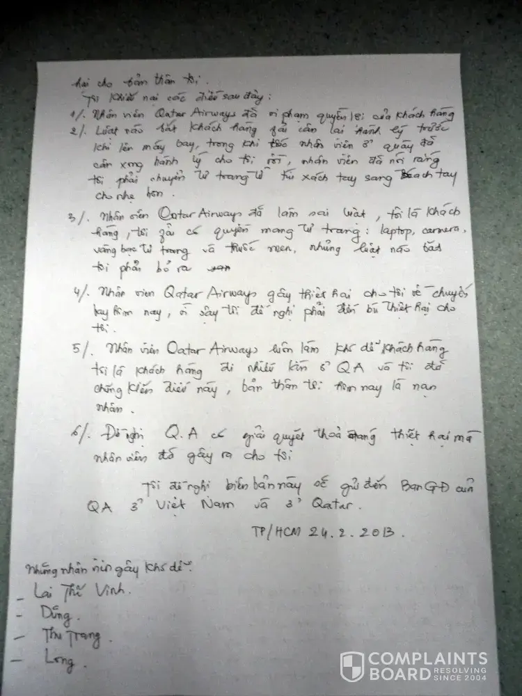 I read your complaint . your case is like my problem .QATAR AIWAYS TREATED WITH PASSENGER like IDIOT, like THE CRIME ...