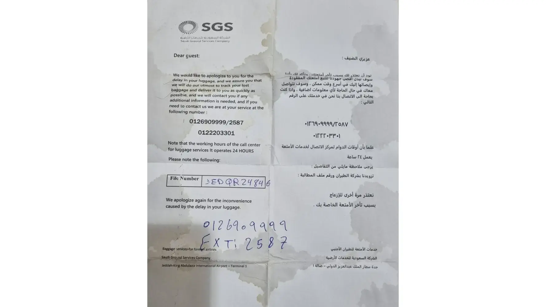 I already filed the complaint of missing luggage in Hail Airport with Claim#HAS SV 35279 on the same date 25.03.2023 upon reaching.