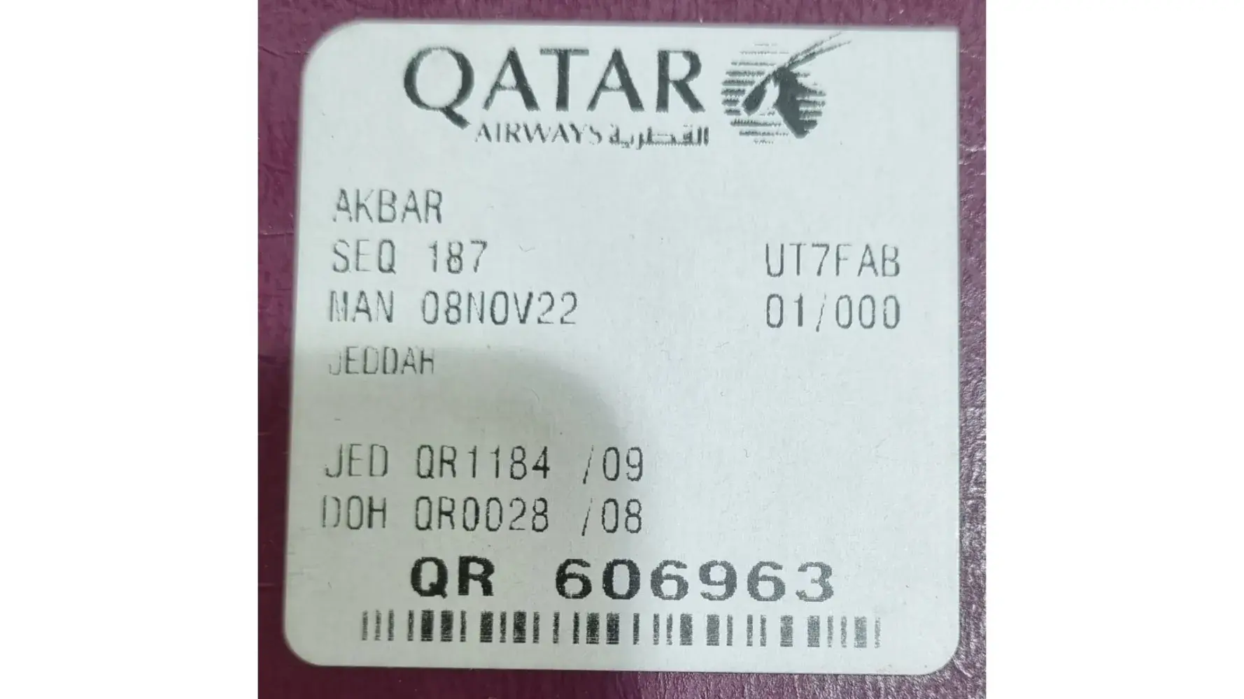 I travelled from Jedda to Doha and then ono London Gatwick.