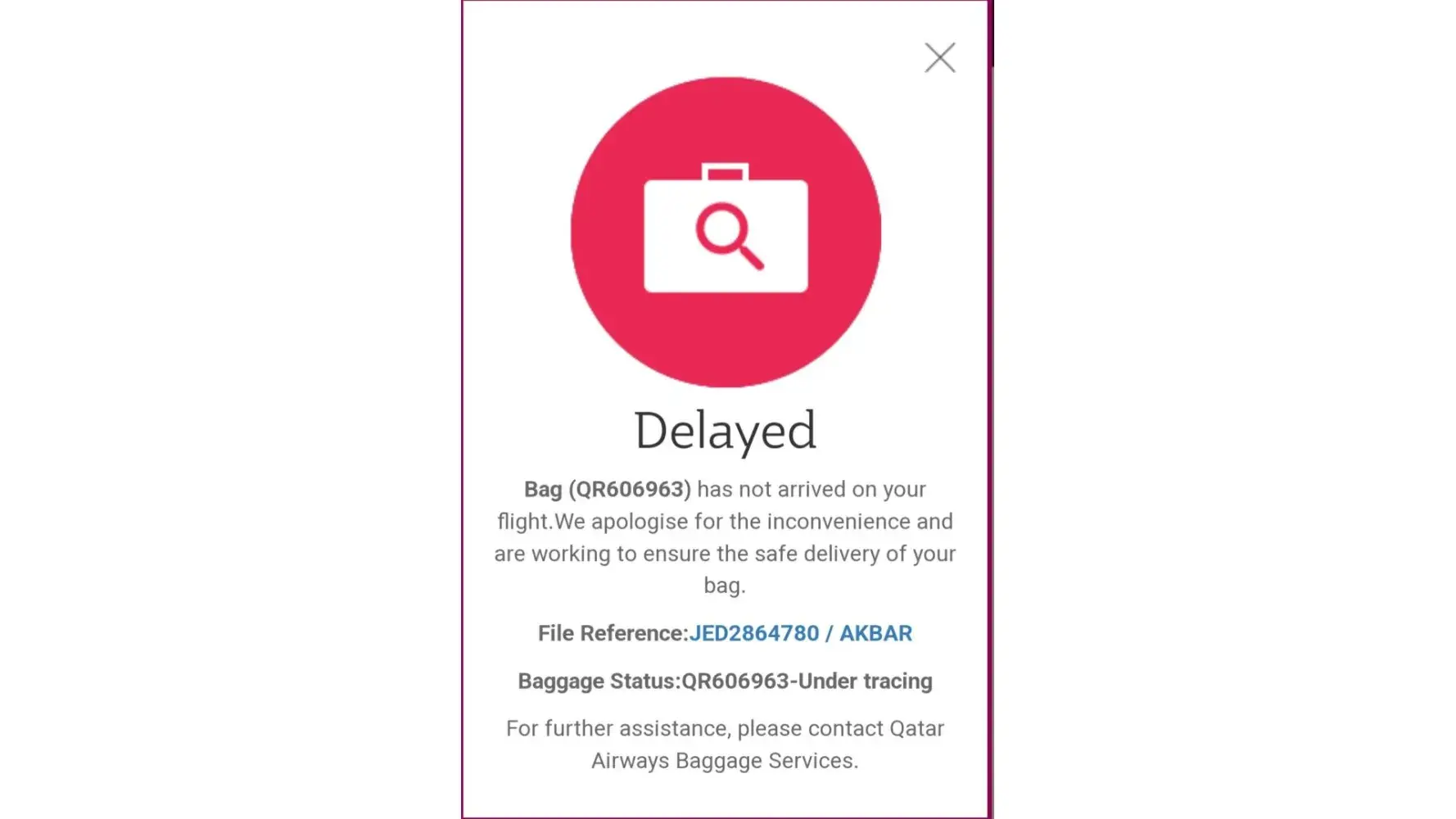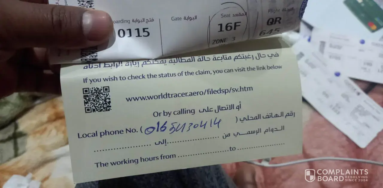 Qatar Airways Luggage Missing SCV87P