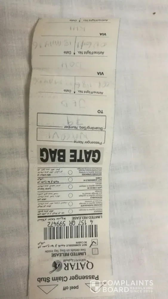 date I have not received my baggage. And I had lodged the claim to Qutar air