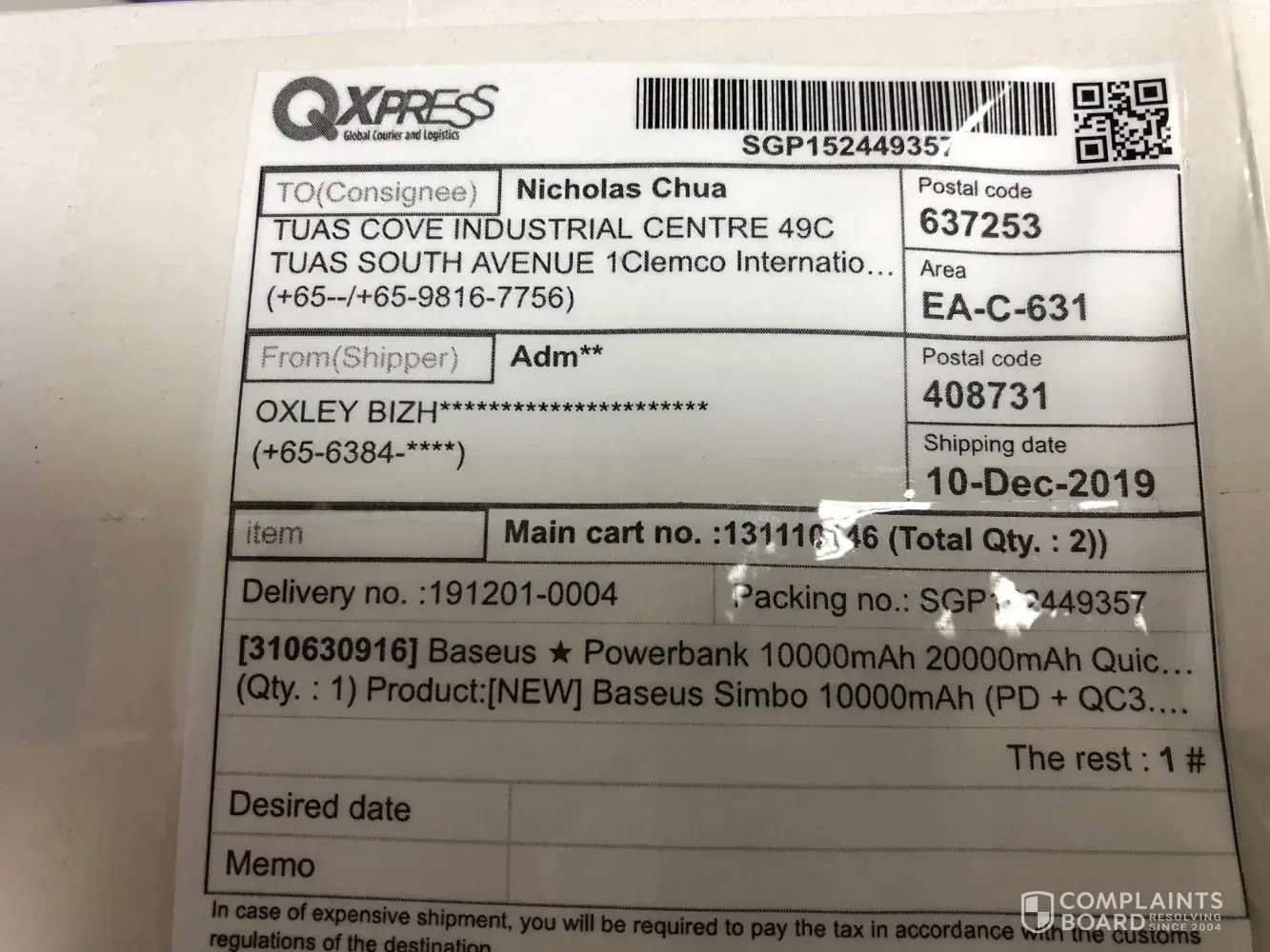 On 12 December 2020 at about 1:31pm, your staff came and collect the parcel from my house and saw it was 4 individual parcel with one order.