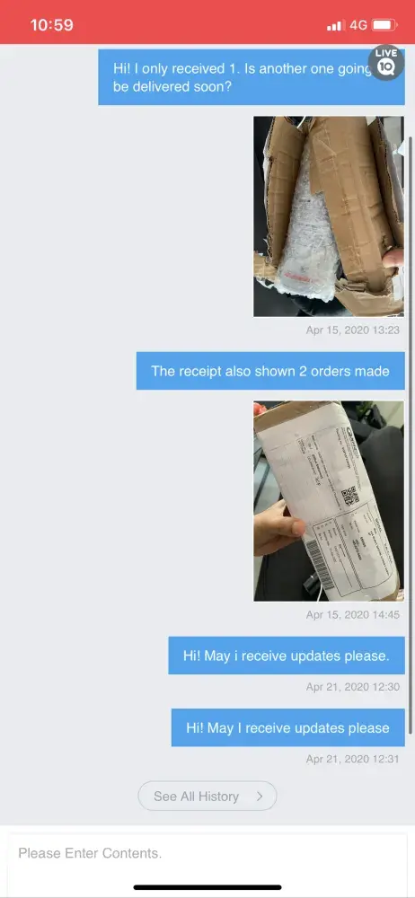 l have written to the vendor on 14 March 2020 to inform that I have not received my order. Vendor informed me on 6 May 2020 that my order has been delivered to me which I still did not receive the physical items. The vendor has since changed the order status unilaterally to "Delivered" despite my request to the vendor to provide me a delivery receipt / tracking from SingPost to prove that the order has been received by me. Vendor has refused to provide to me.