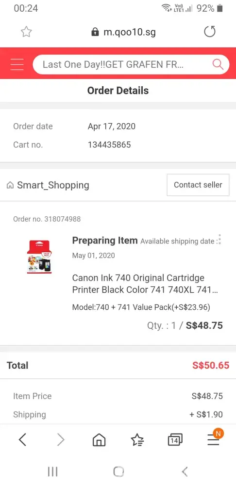 They gave theft as a reason for the order cancellation on 2Feb2020 which is not acceptable as the Qoo system updated me the order status as "shipped out" on 31Jan2020. Yet 1 Feb 2020 they were still selling it @$35.90 each. So I don't understand as my order was already shipped out 31 Jan 2020 and 1 Feb the seller still can post on Qoo selling the product. If the reason is theft then it should not affect my order which was already shipped out.