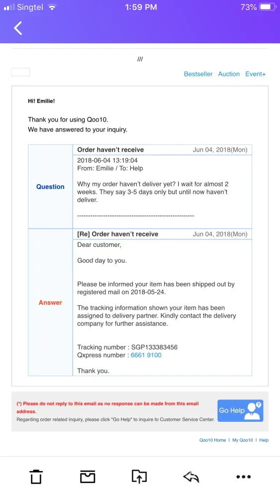 However, our emails were not being treated seriously. All we received was template responses and telling us that "Please clarify further your enquiry as we unable to understand clearly the issue."