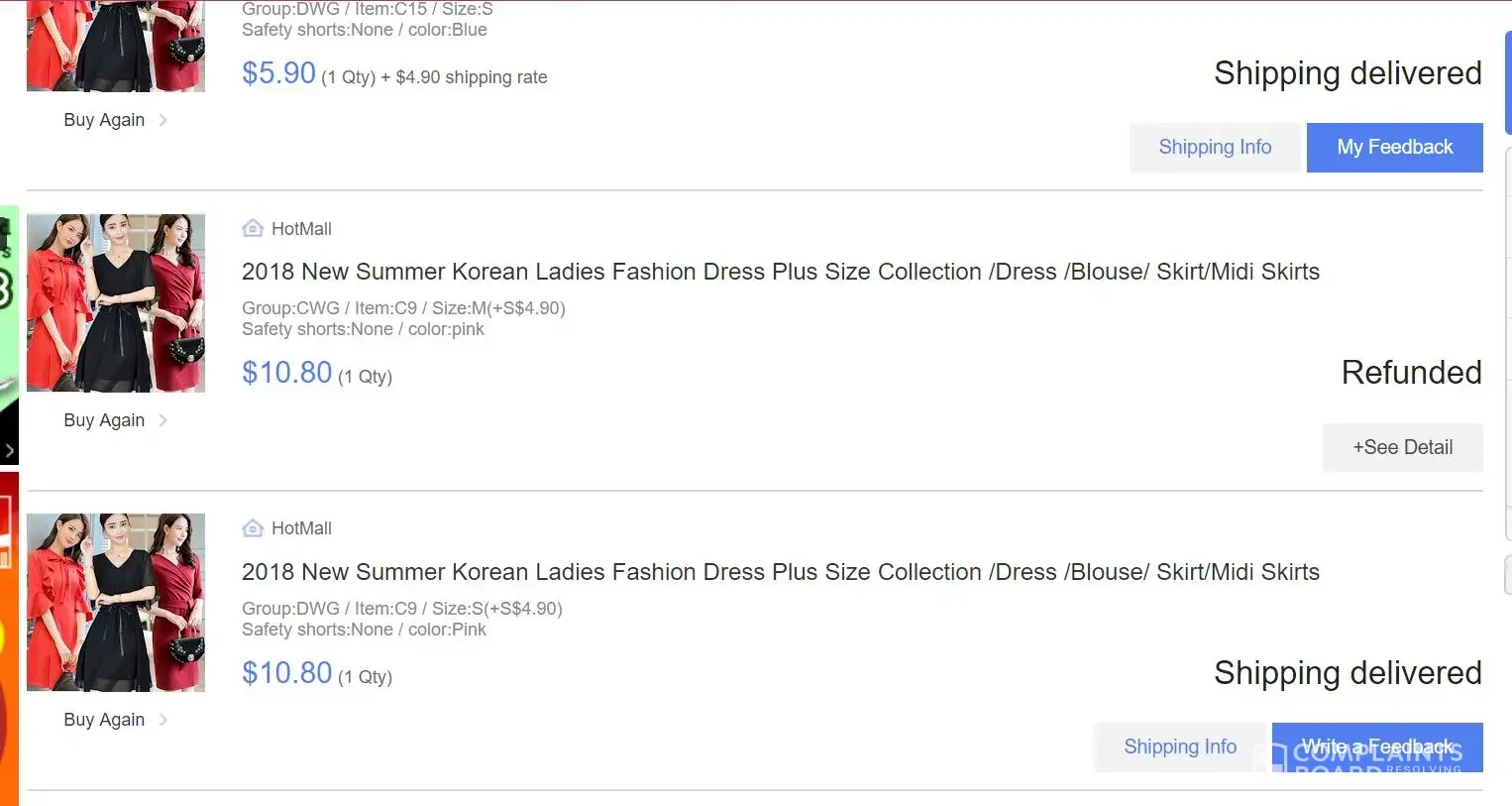 On 15 Aug, i Order 3 dress from https://www.qoo10.sg/item/2018-NEW-SUMMER-KOREAN-LADIES-FASHION-DRESS-PLUS-SIZE-COLLECTION/603674124?selectedOptions='.
