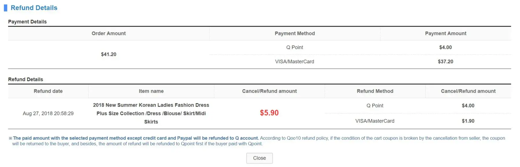 Call multiples times CS, it took 2 weeks then Qoo agreed to send back to seller for "CHECKING".