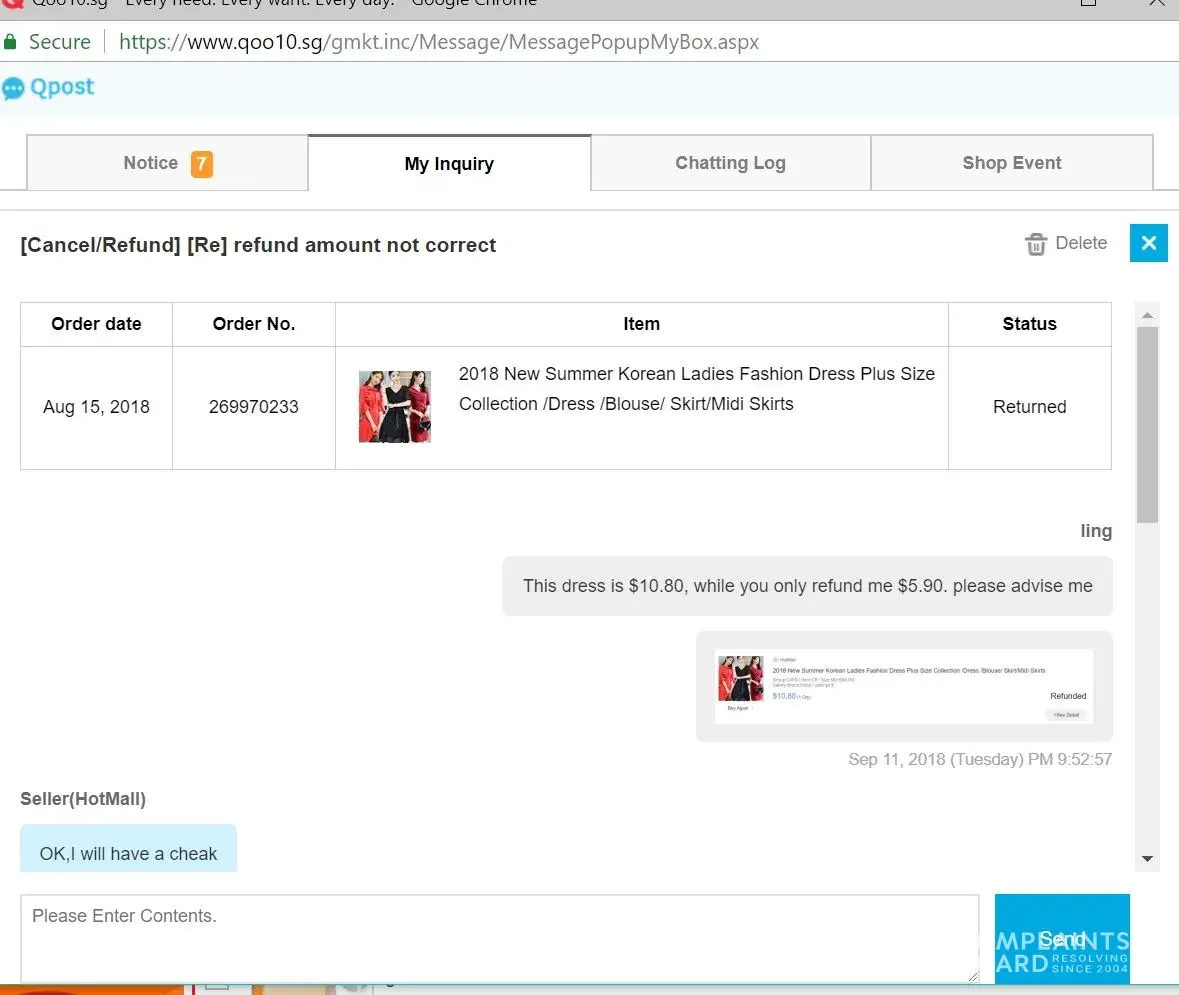 I am frustrated with qoo10 Sg support regarding the refund of my purchased tempered glass brand is not what is stated in my order email confirmation.