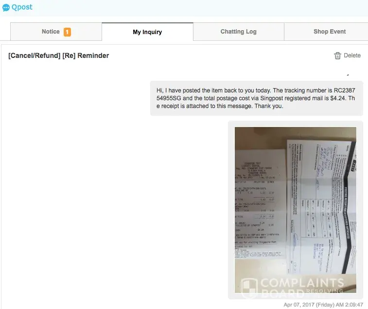 Within 7 days, I've launch a complained for refund with Qoo10.
