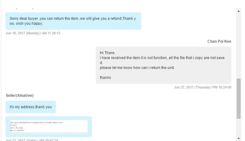 Hi, i bought a miband2 from 1stshop & collected it on 11mar. this seller has given a 3month warranty on this product but after using few days it hanged & can't be sync to my iphone. I do not wanna bother seller so i tried to sync for few days & without anything done it can be sync again, since its working so i continue to use. On the 3rd week, the same problem happen again. This time its worse, there is nothing on the screen after pressing the button & the power indicated 96% few hours before the hang happened. As per last experience, i tried to charged it & waited few days but things didn't get better so i decided to contact seller on 11apr. He requested me to bring the miband2 to his office on 15apr to troubleshoot. Once he plug it into his PC USB, the band miraculously was back to normal. When i went back home the battery drop from 89% to 0% in 1hour's time. I had it full charged & on 18apr it hanged again & the power indicator show 93%. Contacted seller again on 20apr but was given ridiculous answer like "his pc is brand new so his power is higher". I was like "hey, USB gave same output la, wat makes u thing my pc is old?" Anyway from my experience, it seems that seller is just wasting my time & not honouring the warranty. As such i demand a full refund or a new miband2 be send to my home to close this case.
