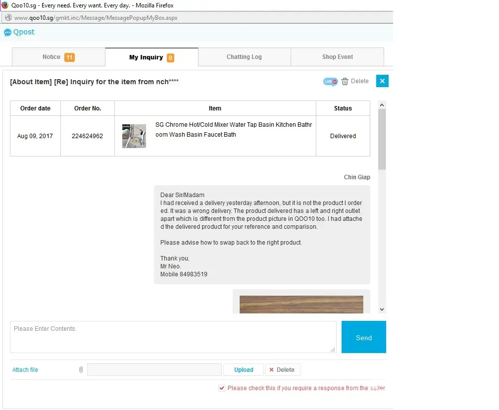 Very Disappointed With Qoo10 SupportSep 04, 2017(Mon)
