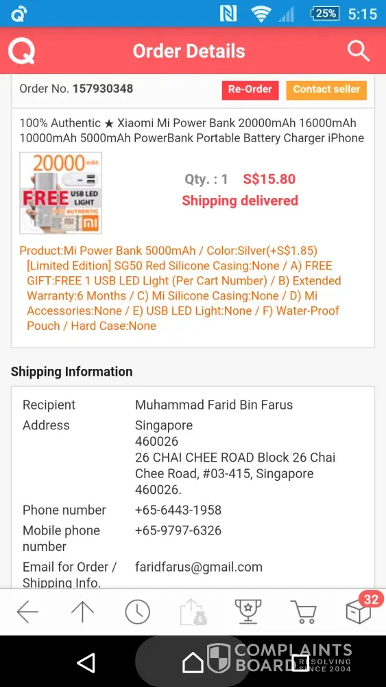bad seller from qoo10. sg