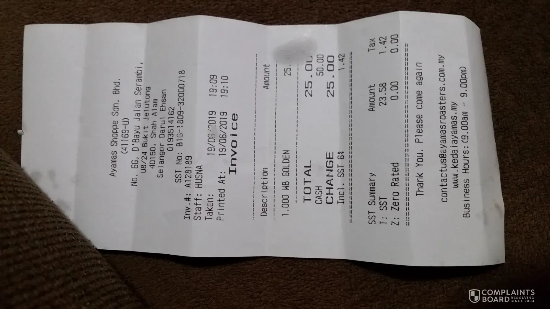 I bought today 19/06/2019 at 7.10pm invoice # A128189 a whole chicken at Bukit Jelutong Shah Alam but the chicken was not fresh. It taste like yesterday's stock or more. It is not juicy at all and the meat is not soft anymore.