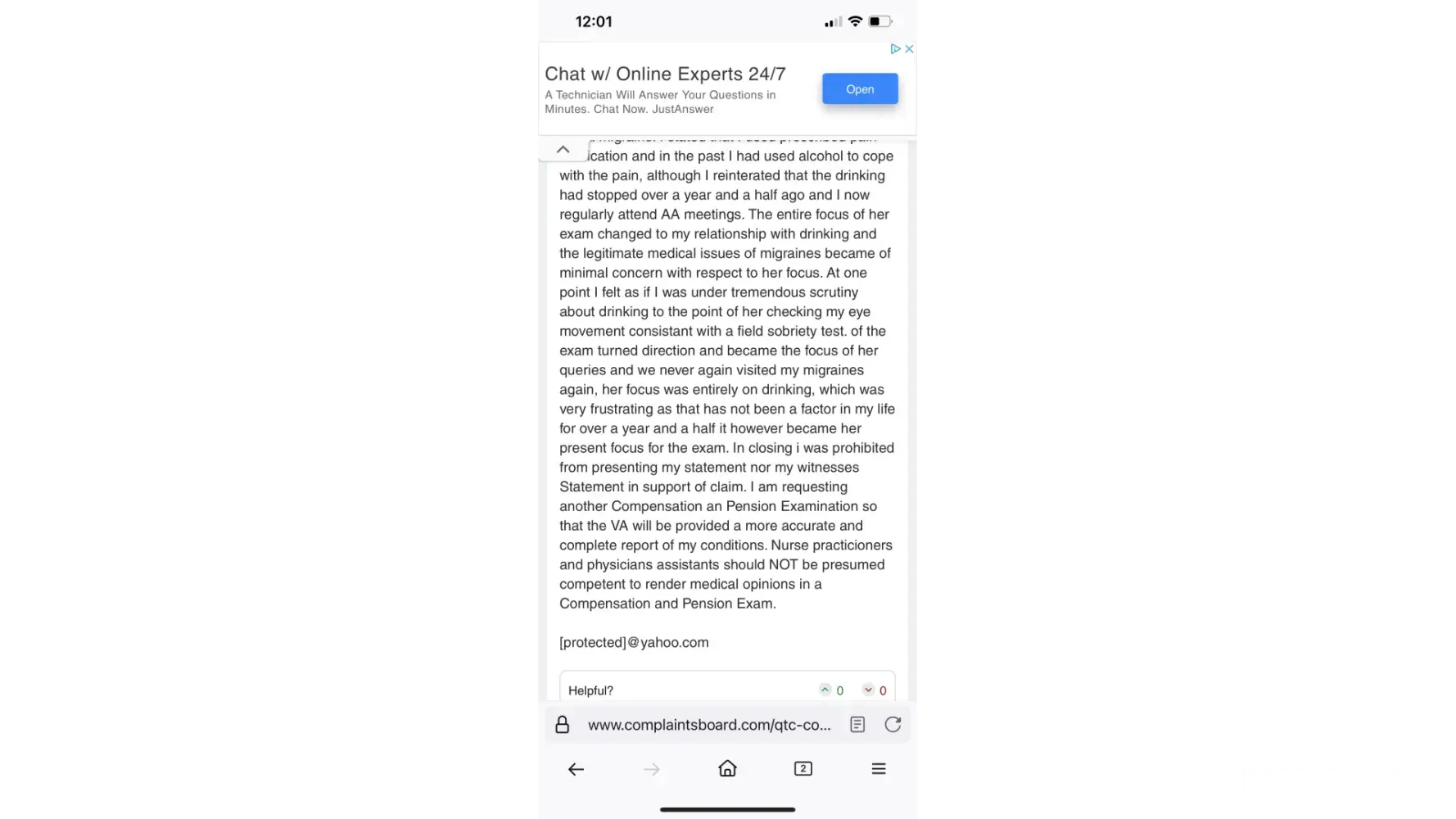 I am requesting another Compensation and Pension Exanimation.On 07/12/2023, the exam was suppposed to be about the Migraine Headaches I suffer which was to be the focus of the exam. From the time I walked into the examiners room to me walking out the door, took less than 10 minutes. During which time, I was not asked or allowed to tell the Nurse practitioner how my condition affects me. The first question asked of me was the nature of my visit. I explained that I was there because of the dibilitating affect of the migraines I suffer. I was asked if I took medication for the condition and what that medication was to which I responded. I was then asked what did I do if I run out of medications and had a migraine. I stated that I used prescribed pain medication and in the past I had used alcohol to cope with the pain, although I reinterated that the drinking had stopped over a year and a half ago and I now regularly attend AA meetings. The entire focus of her exam changed to my relationship with drinking and the legitimate medical issues of migraines became of minimal concern with respect to her focus. At one point I felt as if I was under tremendous scrutiny about drinking to the point of her checking my eye movement consistant with a field sobriety test. of the exam turned direction and became the focus of her queries and we never again visited my migraines again, her focus was entirely on drinking, which was very frustrating as that has not been a factor in my life for over a year and a half it however became her present focus for the exam. In closing i was prohibited from presenting my statement nor my witnesses Statement in support of claim. I am requesting another Compensation an Pension Examination so that the VA will be provided a more accurate and complete report of my conditions. Nurse practicioners and physicians assistants should NOT be presumed competent to render medical opinions in a Compensation and Pension Exam.