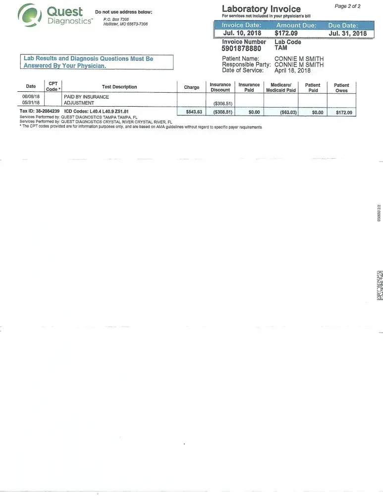 This company has no customer service whatsoever. My advice to anyone who has a choice whether to deal with any Quest labs whose testing and billing goes through Baltimore, MD to stay as far away as possible. Additionally they are also balance billing against their agreement with MultiPlan/UHC. I have no respect left for this company.