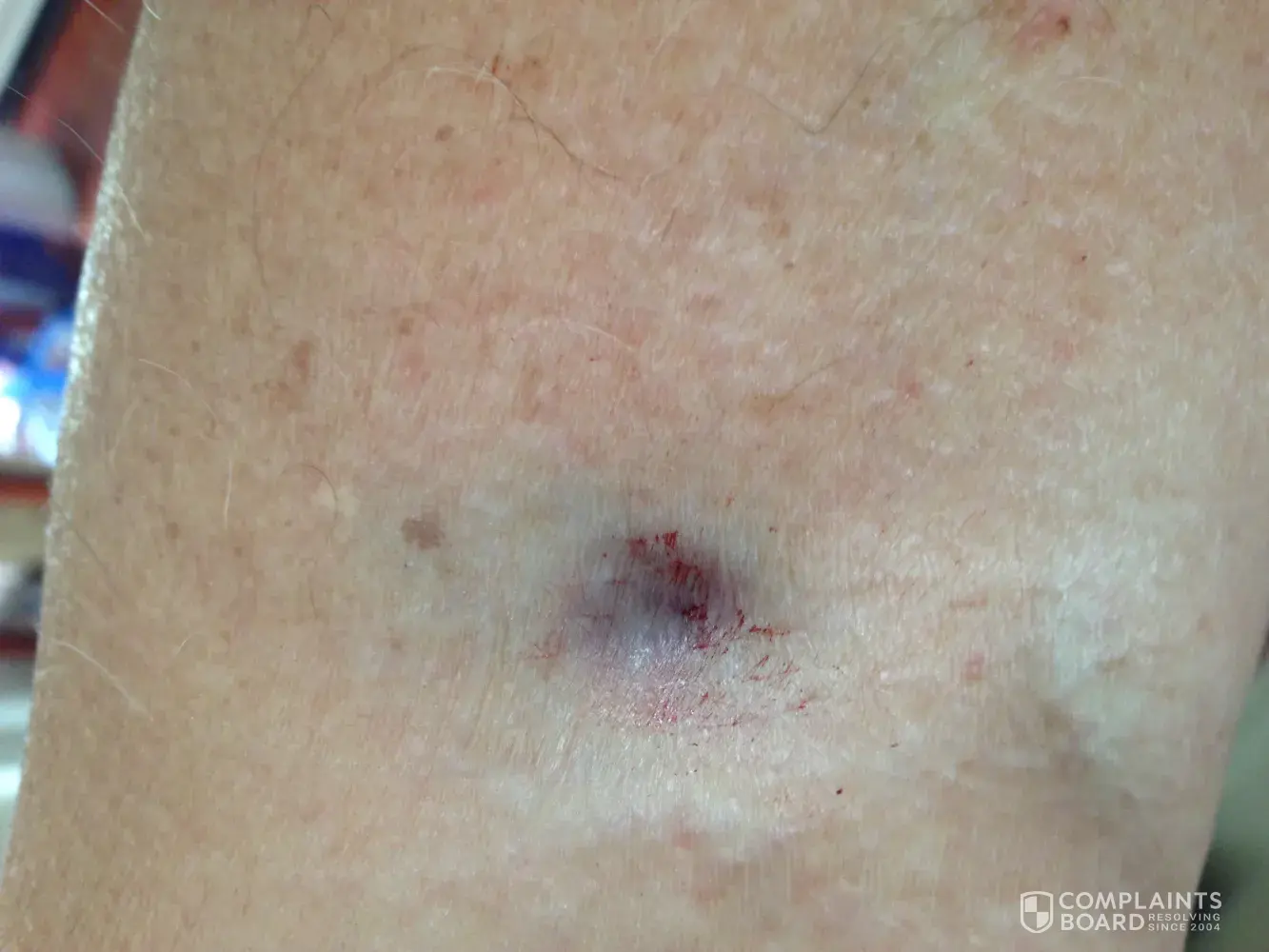 Plebotomist drew blood from vein on left arm it bled profusely after then overnight turned into a big discolored streak, I saw my physician today and was sent for an ultrasound to check if there was a possibility of a clot. This employee is obviously not qualified. the location is 4545 Spotsylvania Parkway fredericksburg, Virginia 22408.. I have been using Quest for over 25 years at various locations, never had this problem before.