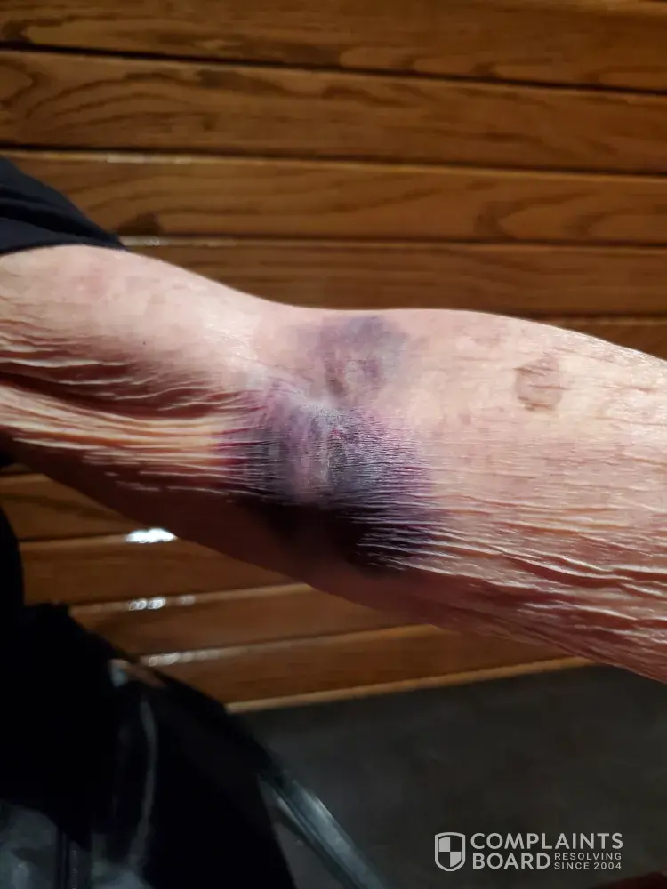 My 91-year-old mother went for blood work. The technician was having a difficult time finding vein. Instead of looking elsewhere she forced the needle