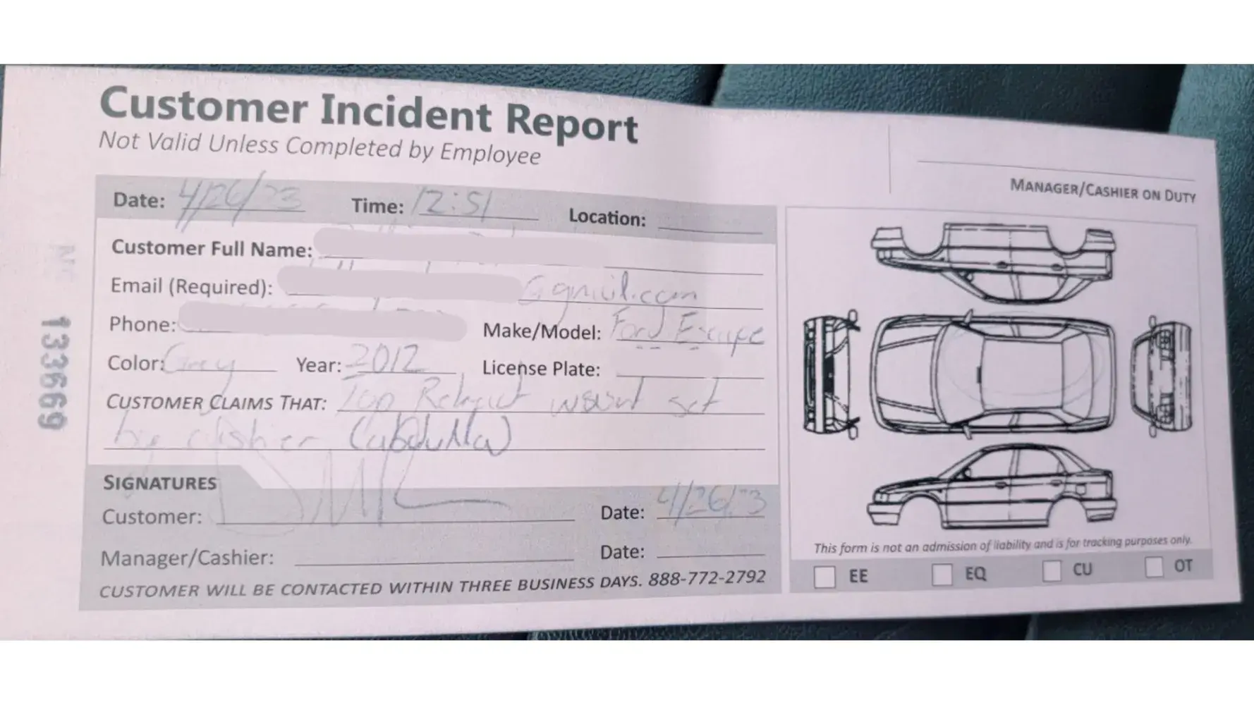 I went through car wash on 7/23/23 asked to pull back brushes (first time driving through car wash). Young lady says "sorry but we're having problems with doing that", ok sign me up for the monthly program.. go through and hand drying I noticed the chips, brought it to her attention and filled out incident report. I waited almost Two weeks for a call from mgr. (Daniel Garcia), I went on a Thursday and he handed me a generic letter stating that they are negligent for damages. I finally got a hold of regional mgr (Trevor) and he states that upon watching video I had no chips Pryor.. exactly it wasn't til after I had gone through.. please help