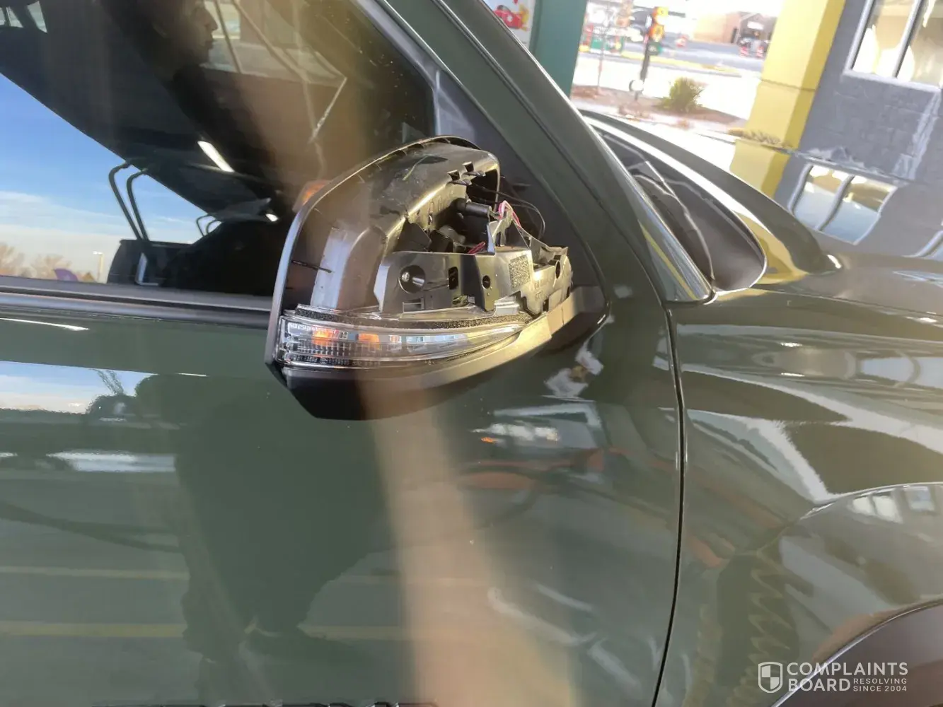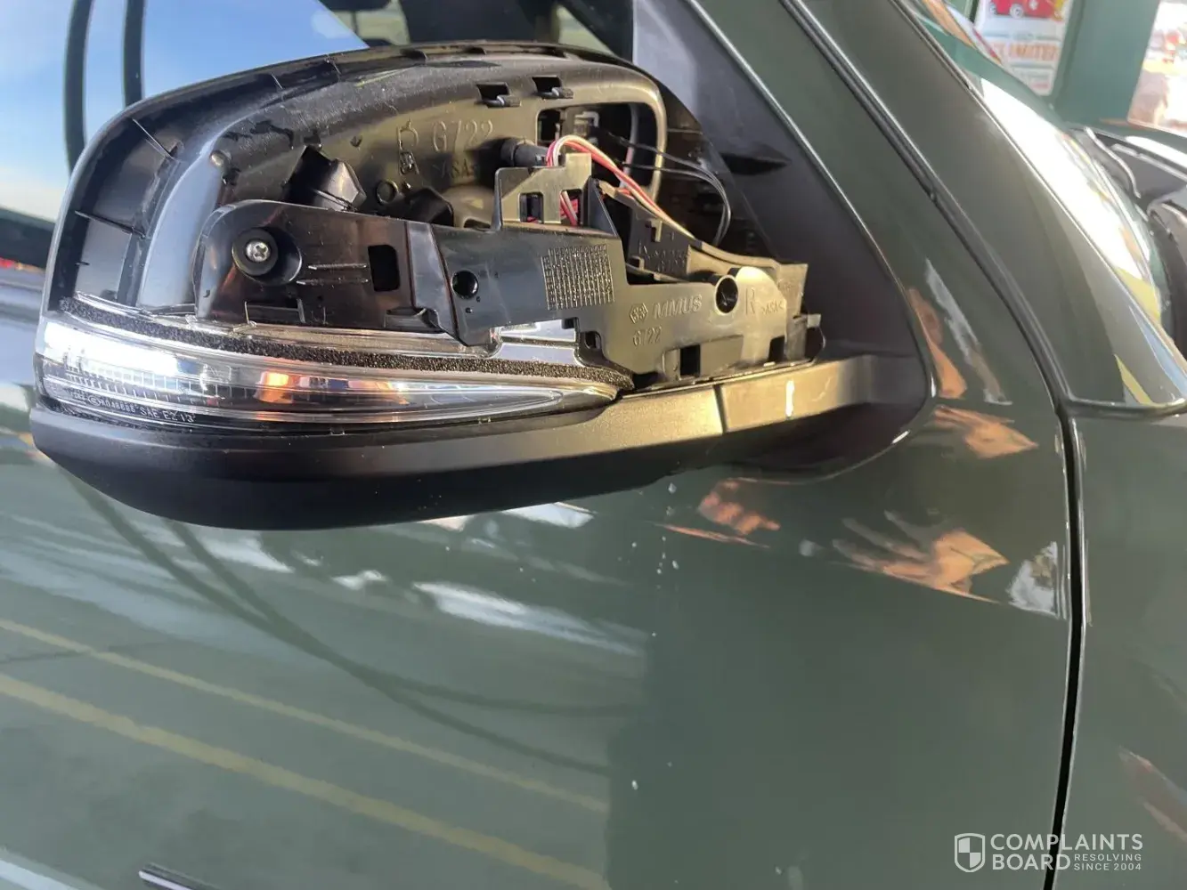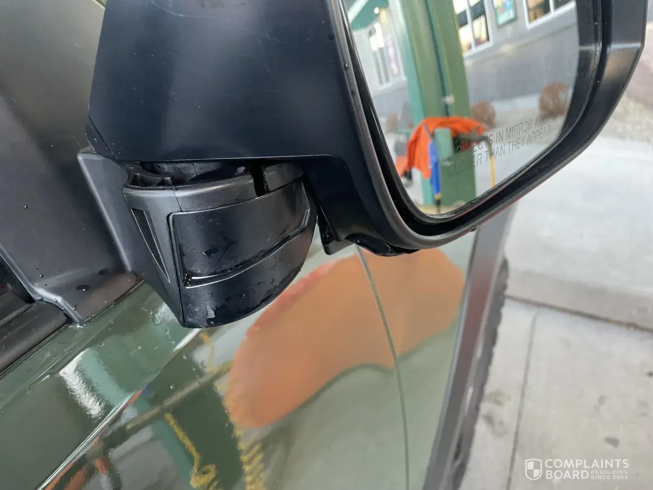 I was washing my car normally out of no where my side mirror was thrown backwards and it broke then the machine pushed it forward when i got out and was vacuuming my car i see that the mirror is broken some parts of the mirror we’re just hanging from the mirror I see the inside of the mirror and it has pieces broken then I speak to a lady there. She tell...