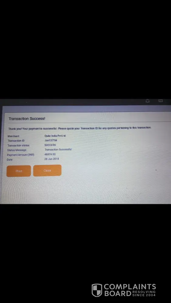 To make matters worse, there was no payment confirmation page from Quikr after I made the payment online. Although a html page was generated with a transaction ID, it vanished in just 10 seconds automatically. What's more, the spelling of 'transaction' was incorrect, which was very unprofessional and made me doubt the authenticity of the site.