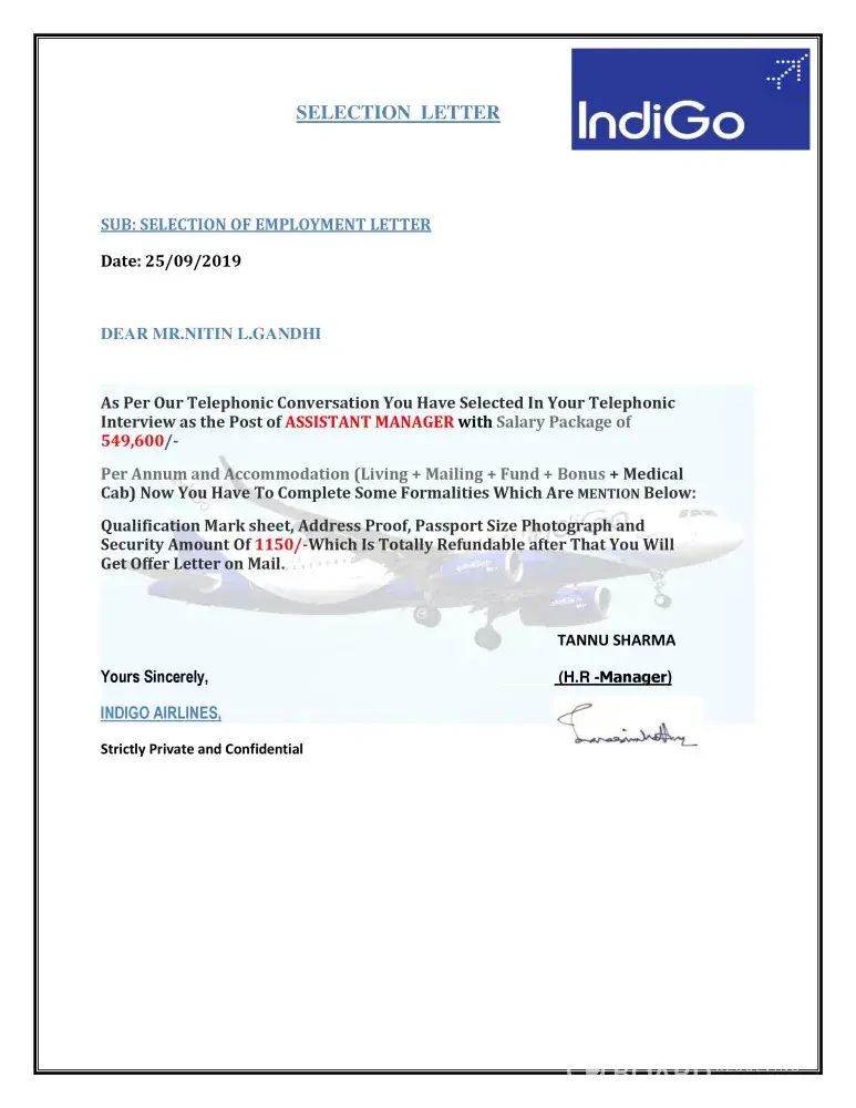 Dear candidate today your interview success full through. H.R. Manager Ashi so complete
