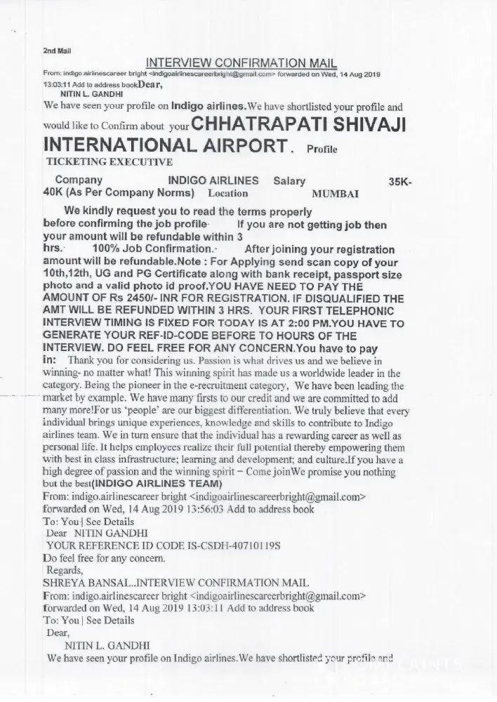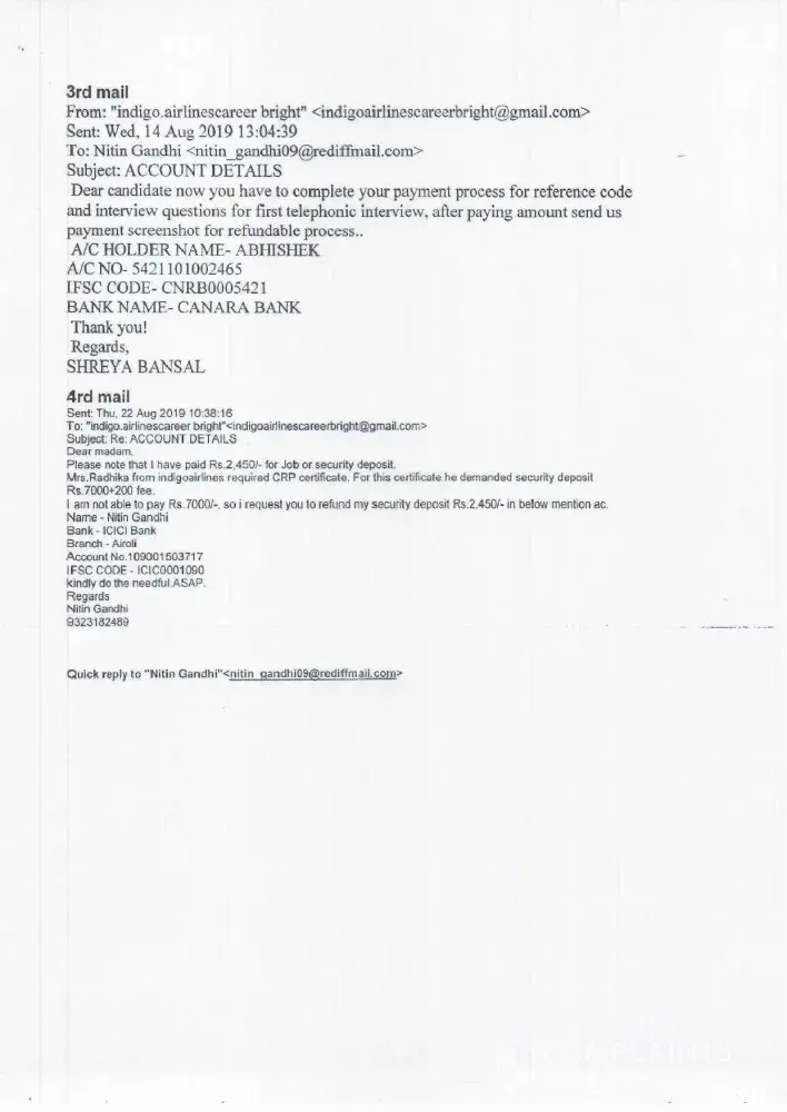 Feeling uneasy about the situation, I called Richa to request a refund of the Rs. 1750 I had paid for the bank form. She told me that she would confirm with management and get back to me on Monday. When I followed up with her, she informed me that my money would be refunded before August 30th. However, I have not received any confirmation or assurance that I will get my money back.