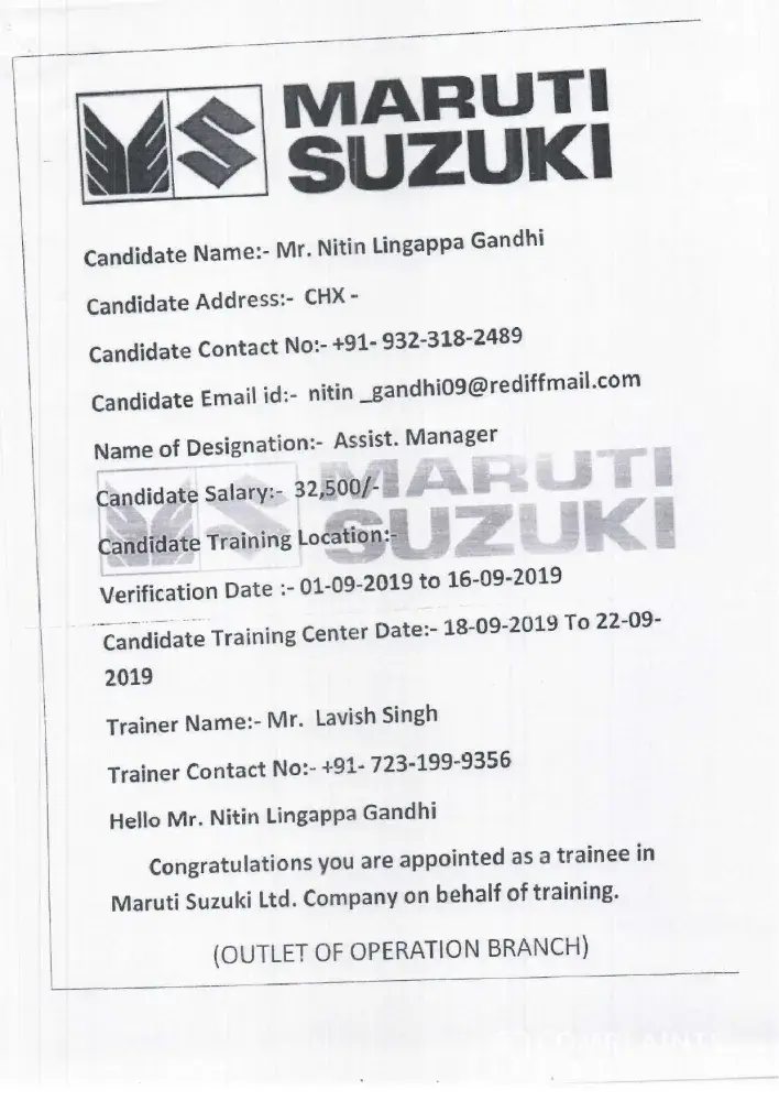 CONGRATULATION DEAR CANDIDATE THIS IS SOFT COPY JOINING LETTER AFTER VERIFICATION HARD COPY LETTER SEND TO YOUR HOME TOWN LOCATION BY SPEED POST.